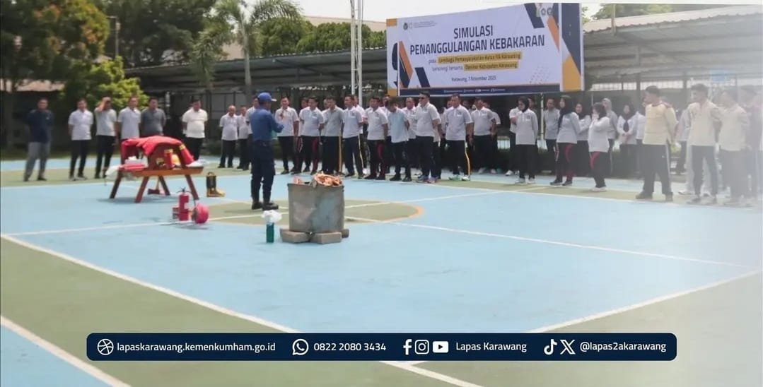 DPDIWOIKARAWANG.INFO – Lapas Kelas IIA Karawang menggelar kegiatan simulasi pemadaman kebakaran di lapangan utama, bekerja sama dengan Pemadam Kebakaran (Damkar) Kabupaten Karawang. Kegiatan ini diikuti oleh seluruh petugas serta perwakilan warga binaan.